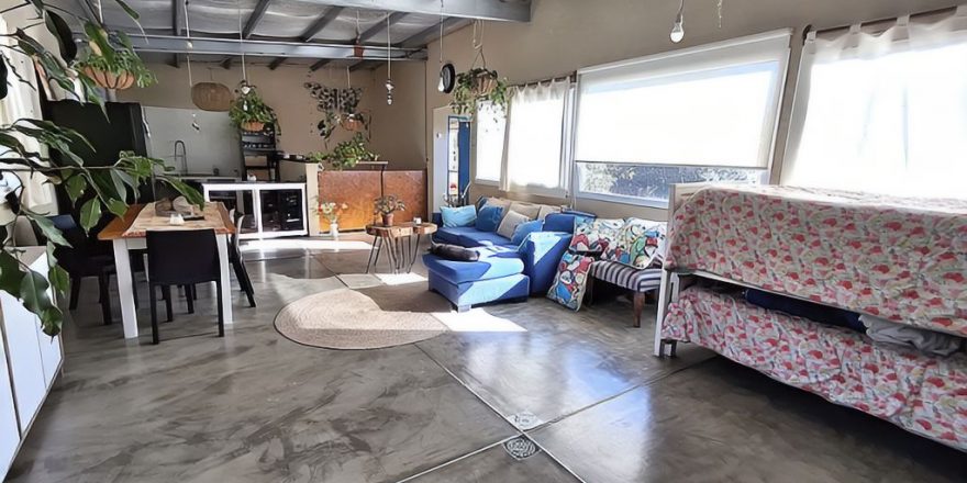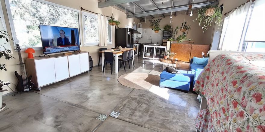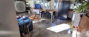 - Piso de cemento alisado, moderno y fácil de mantener