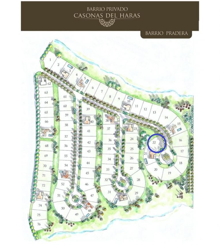 Ubicado en el exclusivo barrio cerrado Casonas del Haras, te presentamos este lote en el sector Pradera, con una superficie total de 678,75 m².